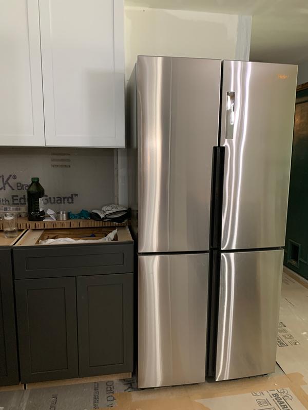 Haier 16 4 Cu Ft Quad French Door Freezer Refrigerator In Stainless Steel Fingerprint Resistant Hrq16n3bgs At The Home Depot Mobile