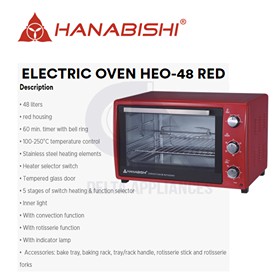 Hanabishi electric oven heo 45ss review. 7 reviews for electric oven. I can make hundreds of cakes cookies and pastries with this hanabishi electric oven. It includes amazing cooking functions like 5 stages heating and rotisserie function. My partner in my business.