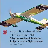 Hangar 9 2365 dist. Unlike many stick designs the hangar 9 ultra stick is configured as a tail dragger instead of the traditional tricycle landing gear arrangement. The brand new evolution gx33 engine was running rich but had plenty of power for unlim. This is the ultra stick 30cc arf airplane from hangar 9.