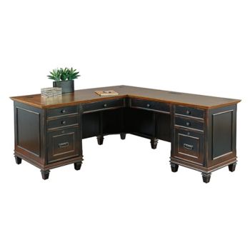 The desk features a weathered two tone finish that is accented by matching metal hardware. It is fully finished on all sides for placement anywhere in a room. The hartford collection will be right at home in either a classic formal setting or a relaxed eclectic home. With classic styling and a hand rubbed distressed black two tone finish you can indulge your love of all things gothic while appreciating tech friendly features.