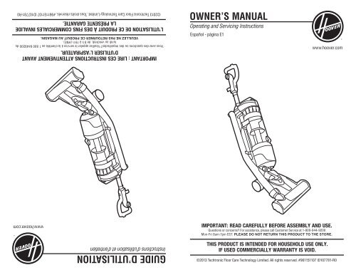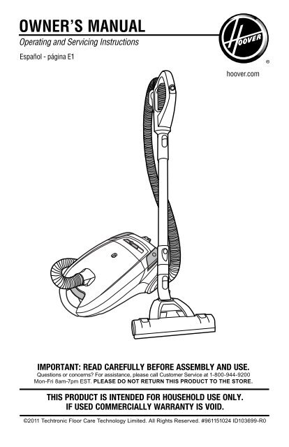 Download english french product manual download spanish product manual. This item hoover windtunnel 2 rewind pet upright vacuum blue uh71215 hoover uh71250 windtunnel 2 whole house rewind corded bagless upright vacuum cleaner with hepa media filtration blue hoover uh72625 windtunnel 3 max performance upright vacuum cleaner hepa media filtration and powerful suction for pet hair red. Enter your email sign up sign up. Important safeguards do not use outdoorsor on wet surfaces.